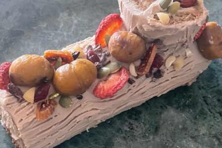 Sweets Shopブッシュドノエルマロン 投稿者: miki更新日:2025-11-282025-11-28 コメントをどうぞ (ブッシュドノエルマロン) 卵、乳製品、白砂糖、小麦粉不使用、 マロンクリームのブッシュドノエル 12月中旬発送